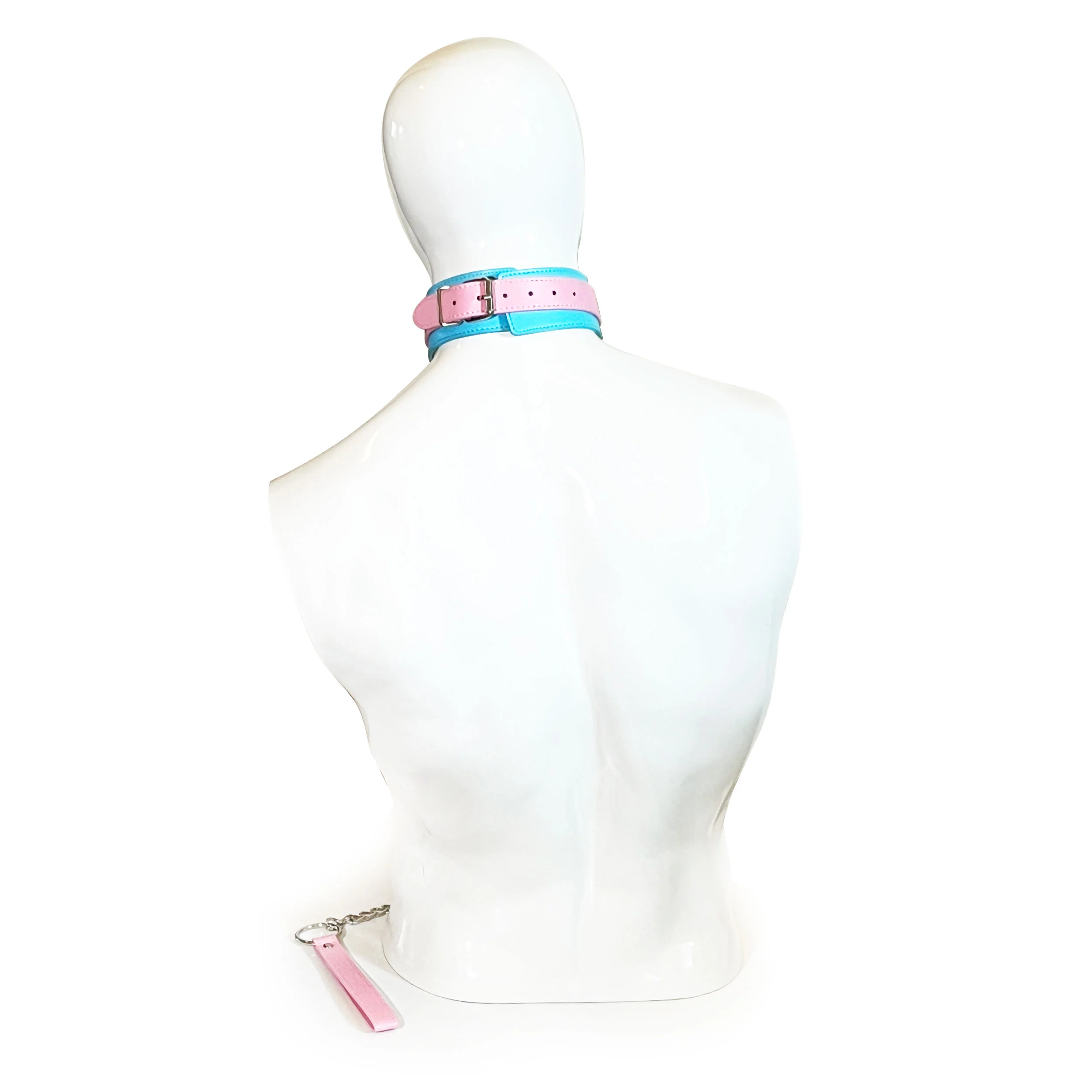 Collar with Chain Leash Set by Fetish Pleasure Play in Teal and Pink