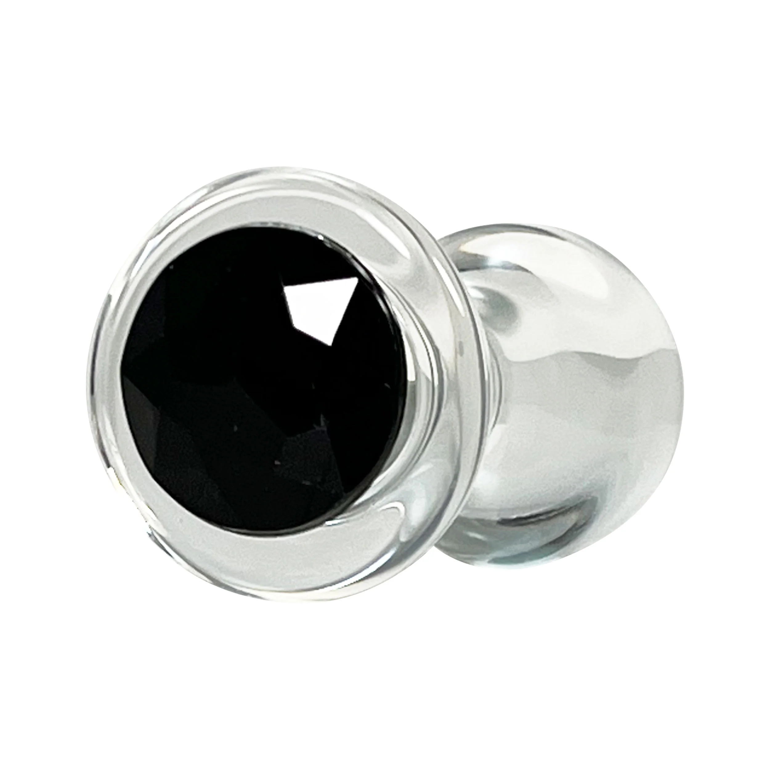 -70%Fetish Pleasure Play Small Glass Black Jeweled Butt Plug—