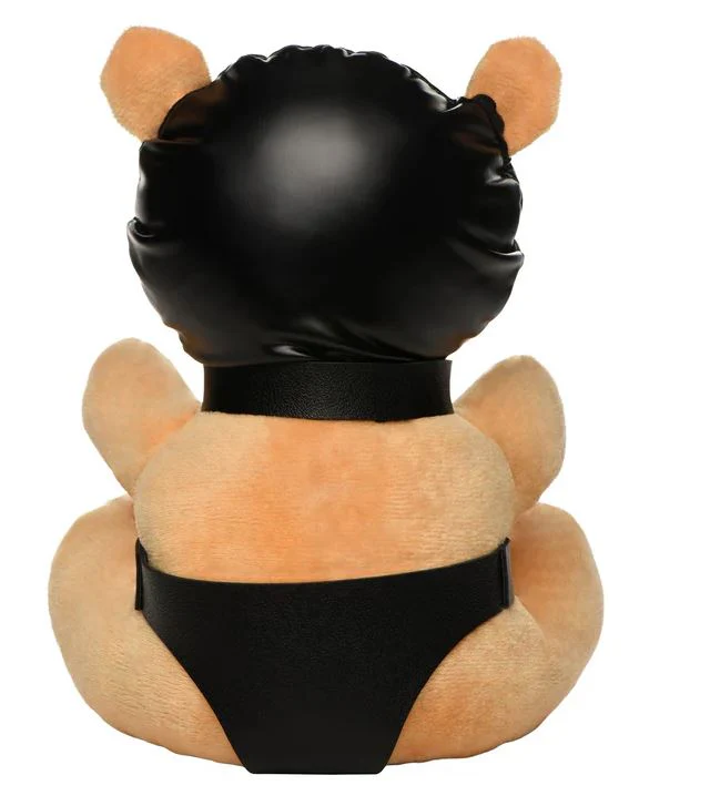 - Great Novelty Gift: This hooded bear makes a perfect little gimp for your amusement! Give it as a gift or keep it for yourself! Its little, peach bear body is dressed in PU leather underwear and a gimp mask, a chain leash connects to its collar.