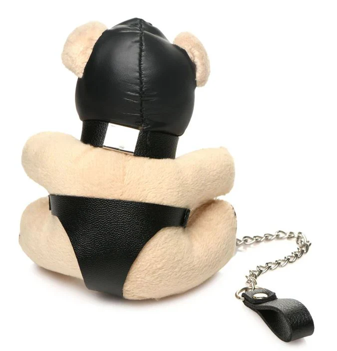 - Great Novelty Gift: This hooded bear makes a perfect little gimp for your amusement! Give it as a gift or keep it for yourself! Its little, peach bear body is dressed in PU leather underwear and a gimp mask, a chain leash connects to its collar.